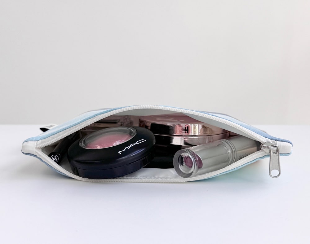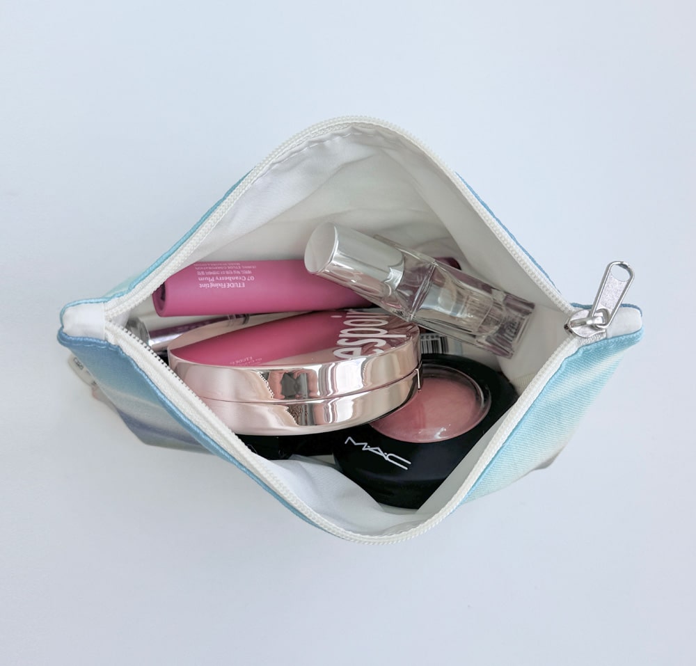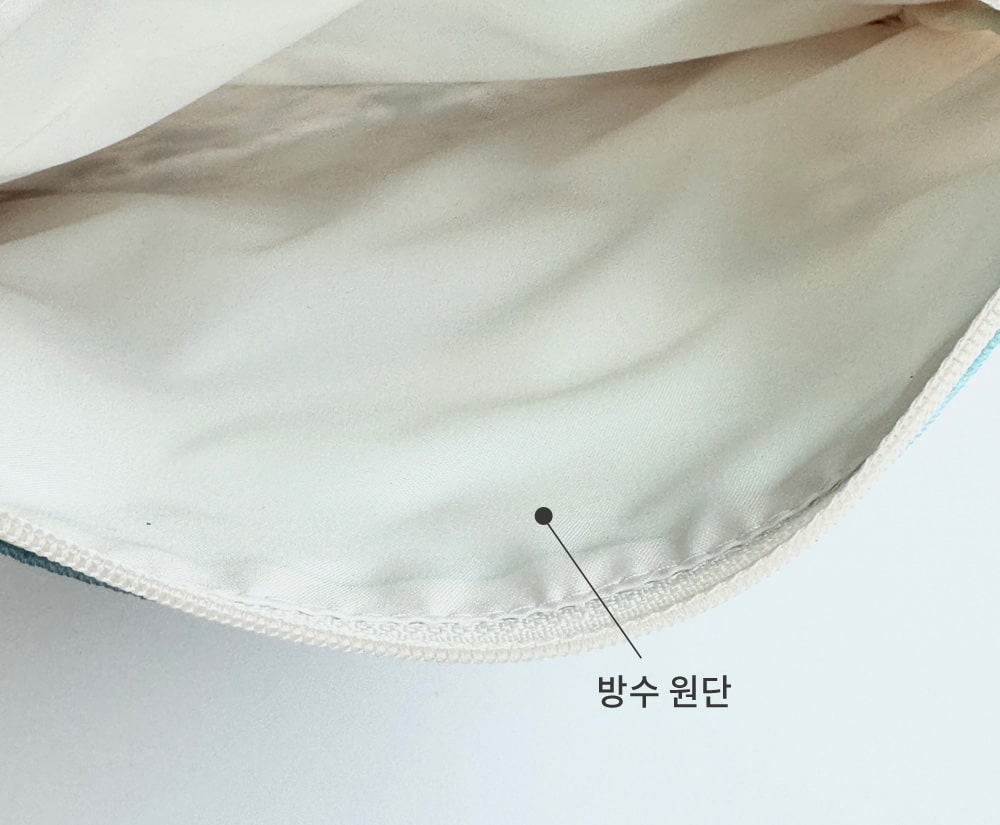 파우치 안감은 방수 원단으로 화장품이 새더라도