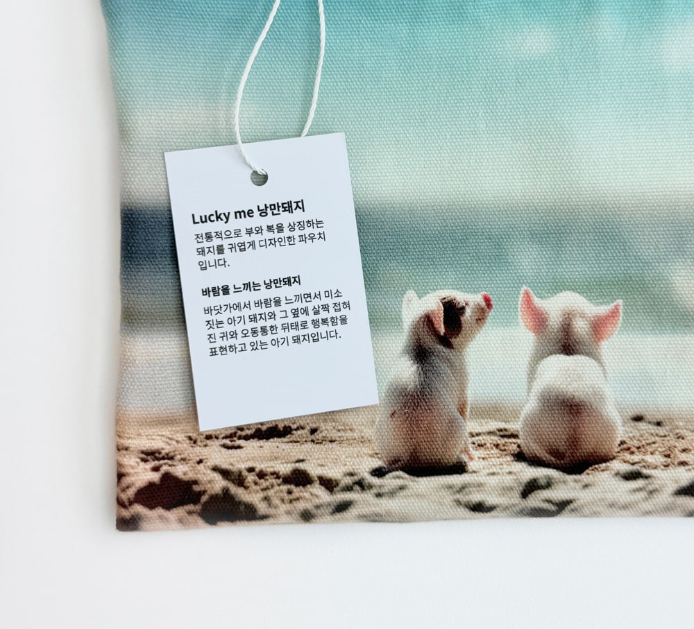 아기 돼지가 미소 짓고 있는 디자인입니다:)