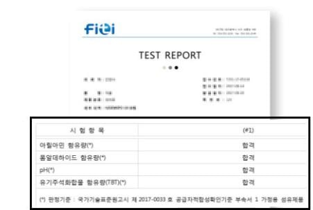 유기 주석 화학물 등 모든 안전 기준을 합격한