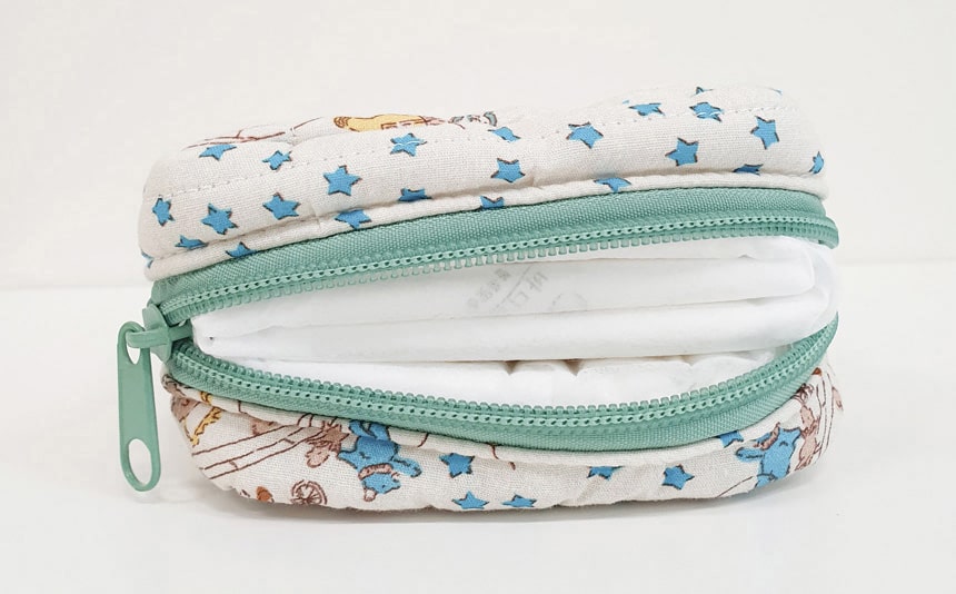 생리대는 중형 기준으로 4~5개가 꽉 차게 들어갑니다.