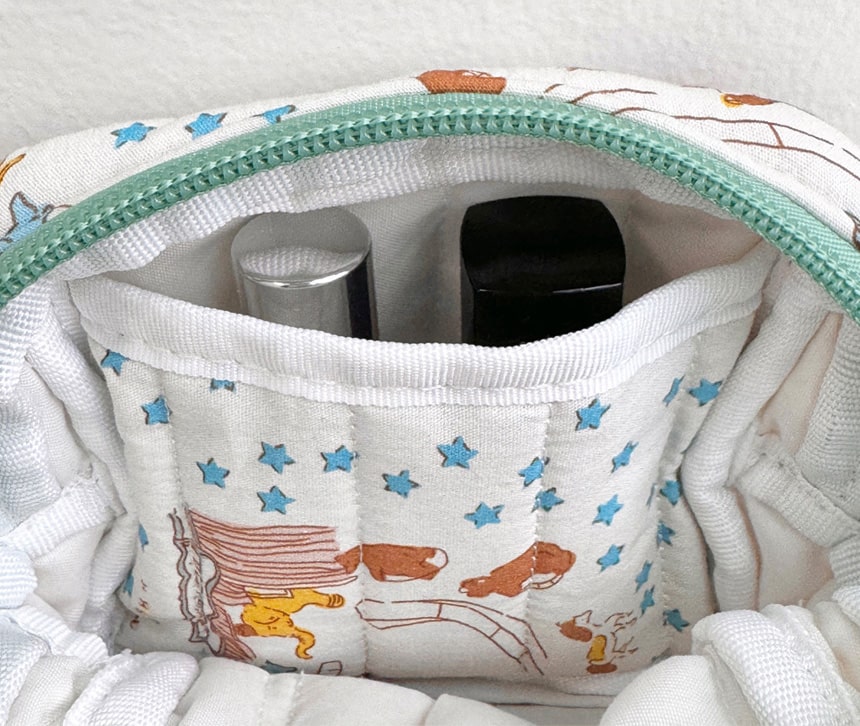 - 누빔 파우치의 경우 박음질이 두 줄로 되어 있을